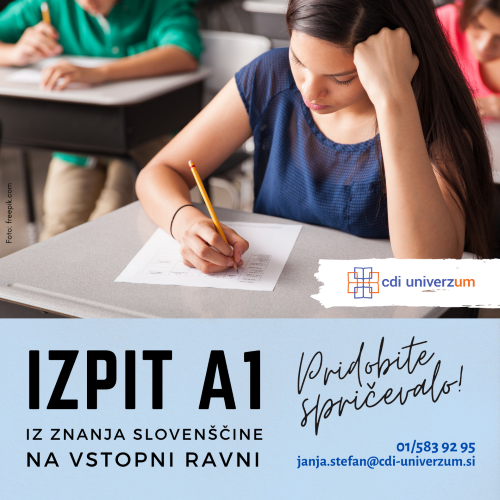 Izpit iz znanja slovenščine VSTOPNA RAVEN A1; Izpitni rok: 19. 3. 2026 in 21.5.2026
