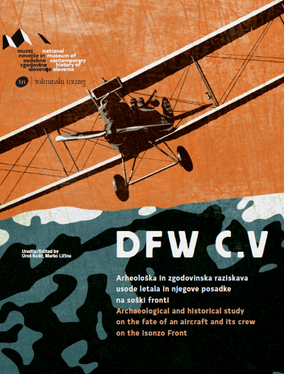 In 2018, an amateur researcher discovered parts of an unidentified aircraft from the First World War in the Bohinj-Tolmin mountain range. In the following years, archaeological excavations were carried out in the area of the crash, which, with a multitude of finds, confirmed that the plane was a German DFW C.V aircraft. This publication describes the results of the archaeological excavation and further research into the fate of the aircraft and its crew, while revealing the activities of the Imperial German aviation units that took part in the last, 12th Battle of Isonzo in the autumn of 1917.